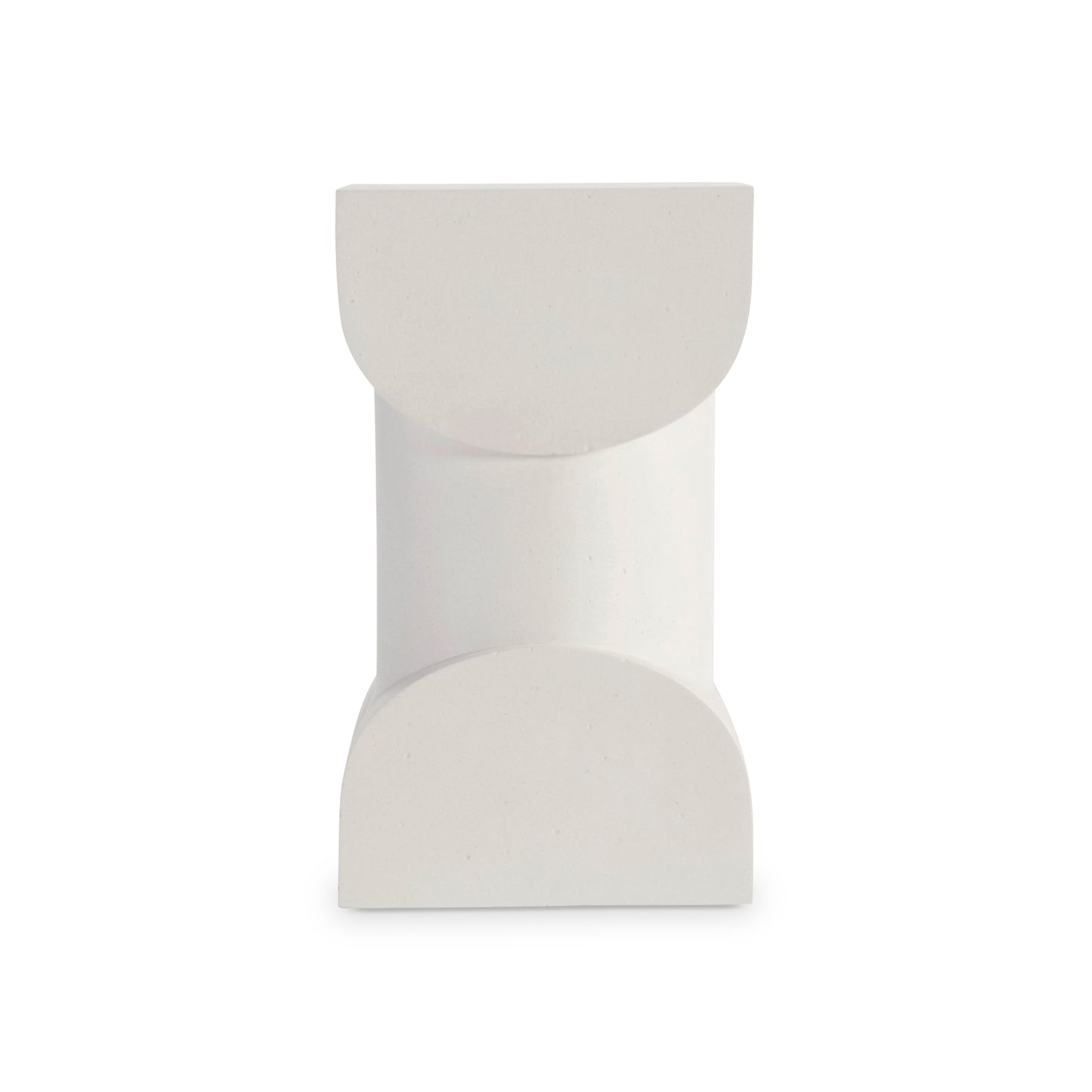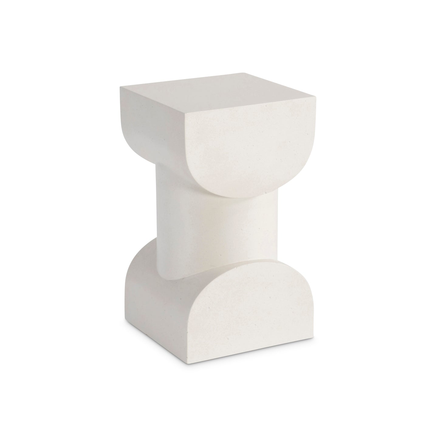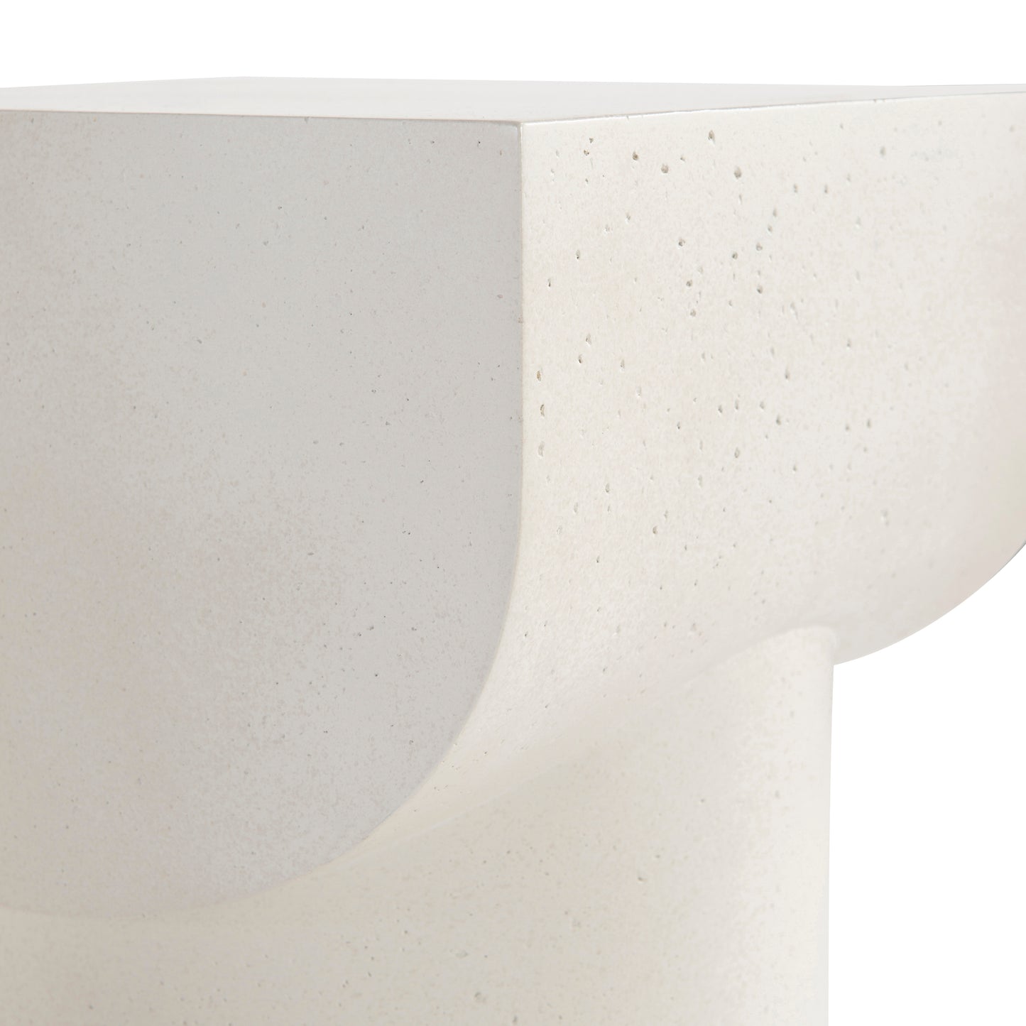 The beauty of modern geometry is evident in the Trianon accent table. Crafted of cast resin in the Quarry finish, the top and base feature a half cylinder with a squared shape for the top and bottom surfaces. They are supported by a full cylinder center post that showcases the contemporary design.