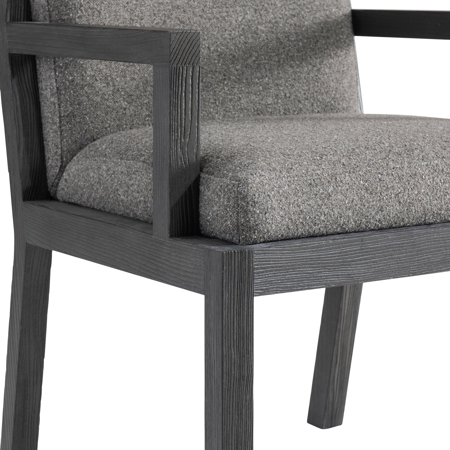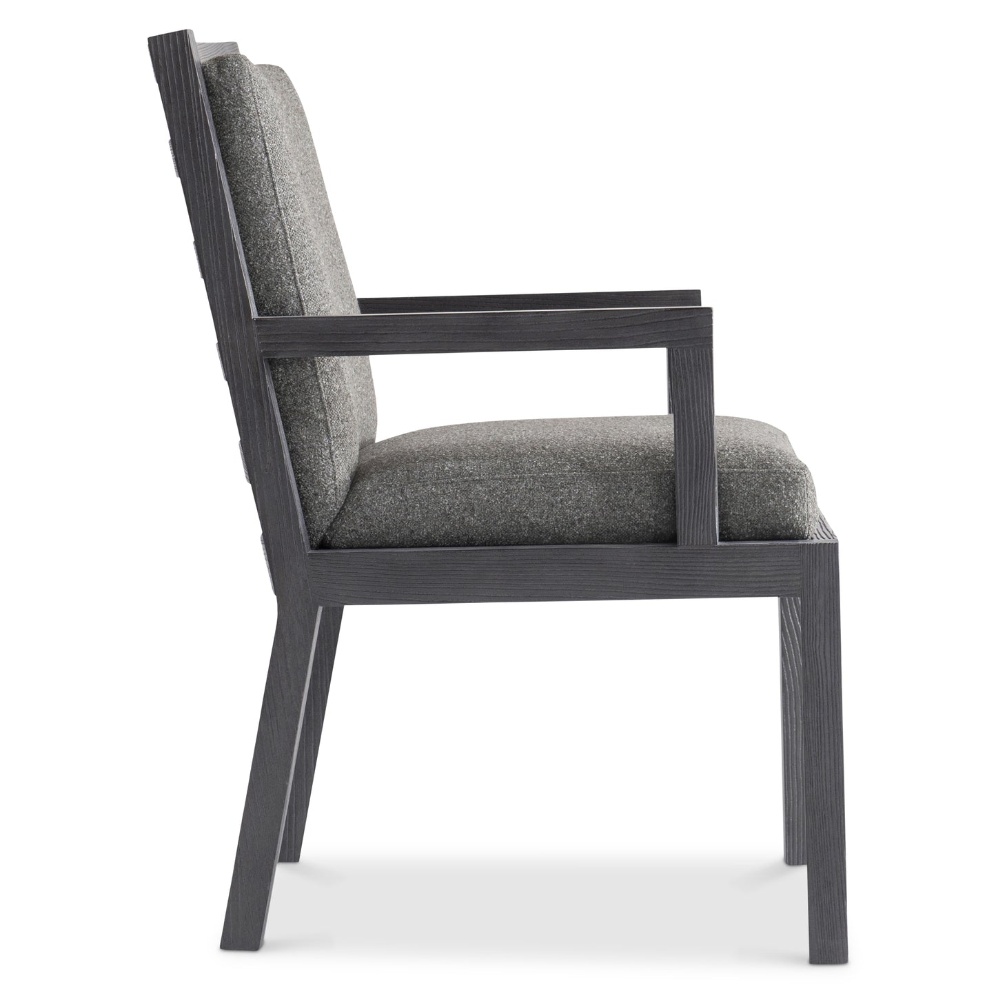 Minimalist modern styling updates a traditional ladderback design on the Trianon arm chair. Showcased in a dark L'Ombre finish, the chair features a comfortably upholstered seat and back. The back also offers open slats that allow the gorgeous fabric to show through.