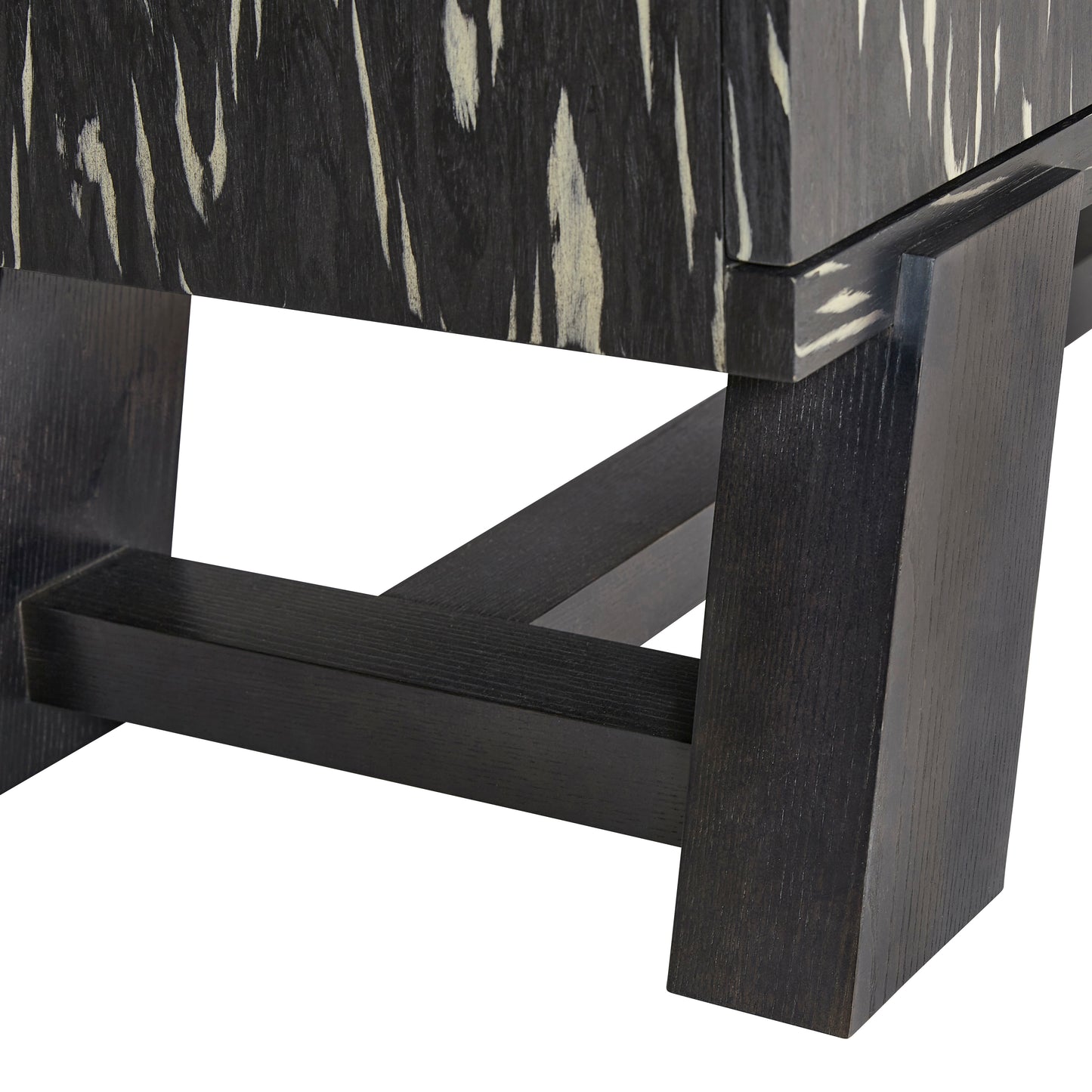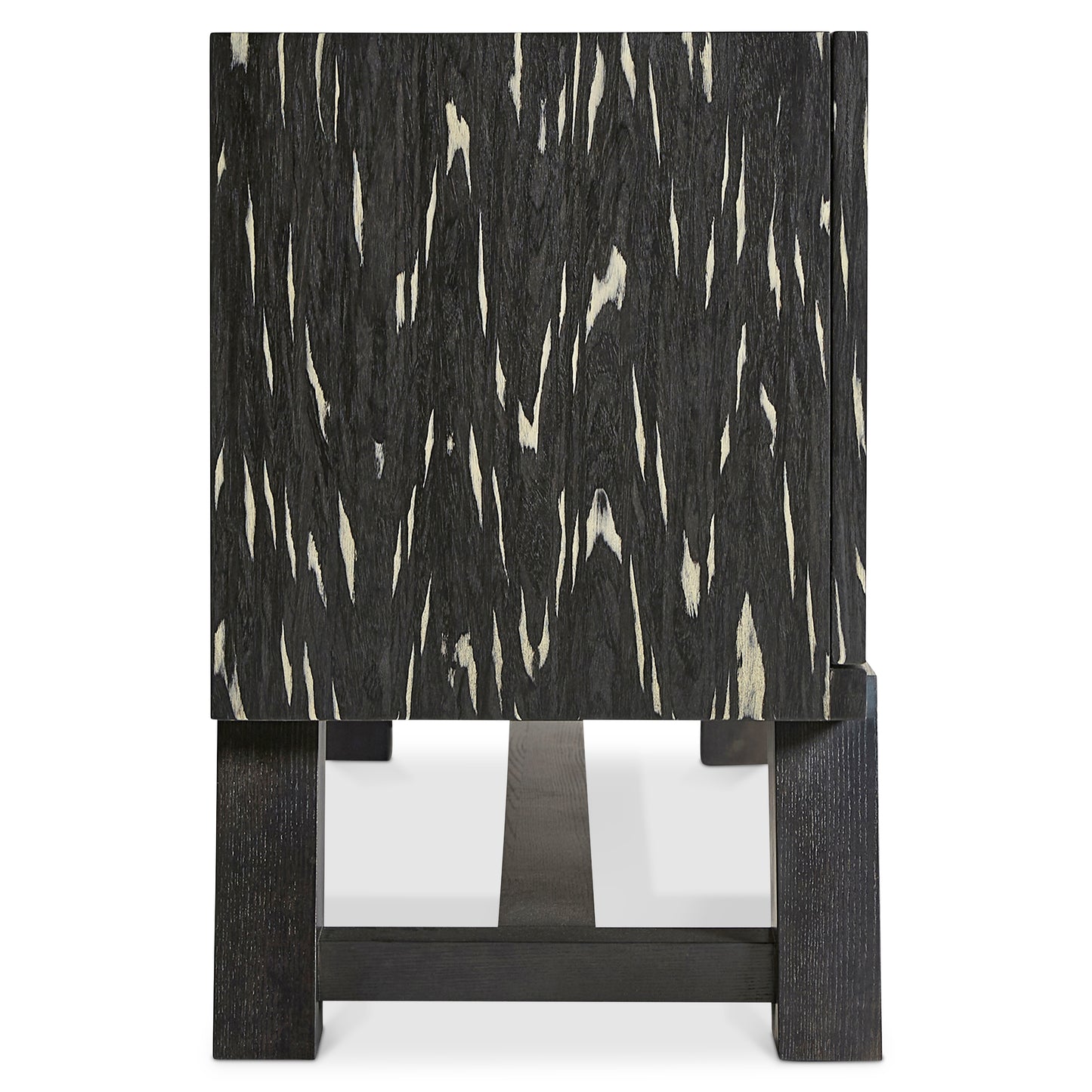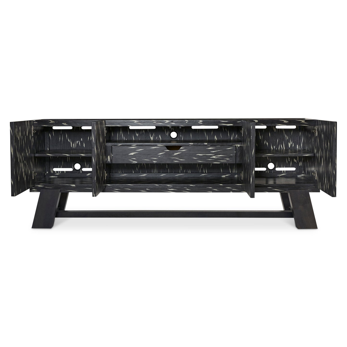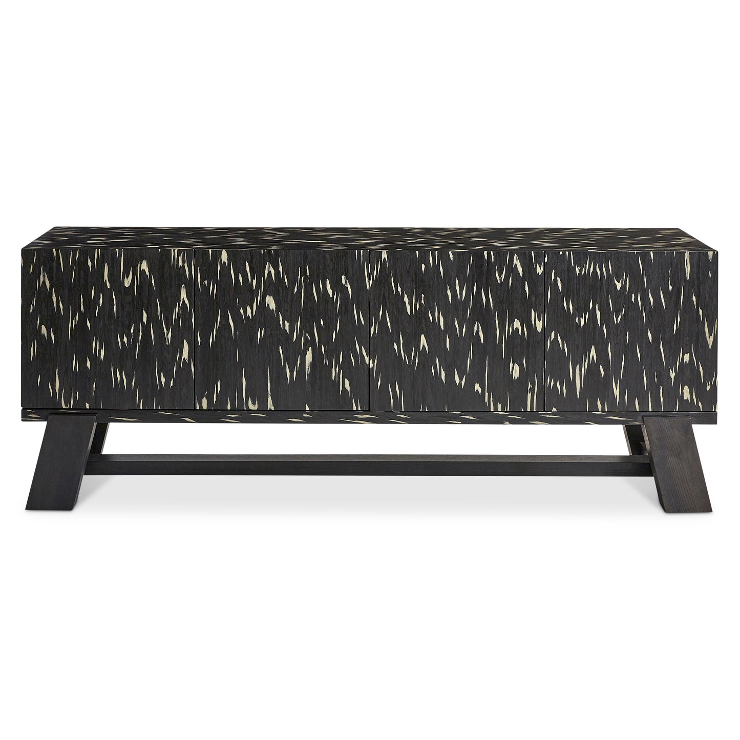 Drama created with simple lines and a bold finish that draws all eyes, this entertainment credenza will be the star of the show with its stunningly artistic Engineered Contrast Ebony finish. The case offers four push-to-open doors that easily store any entertainment or gaming equipment, and is supported by four black diagonal legs joined by horizontal and vertical stretchers.