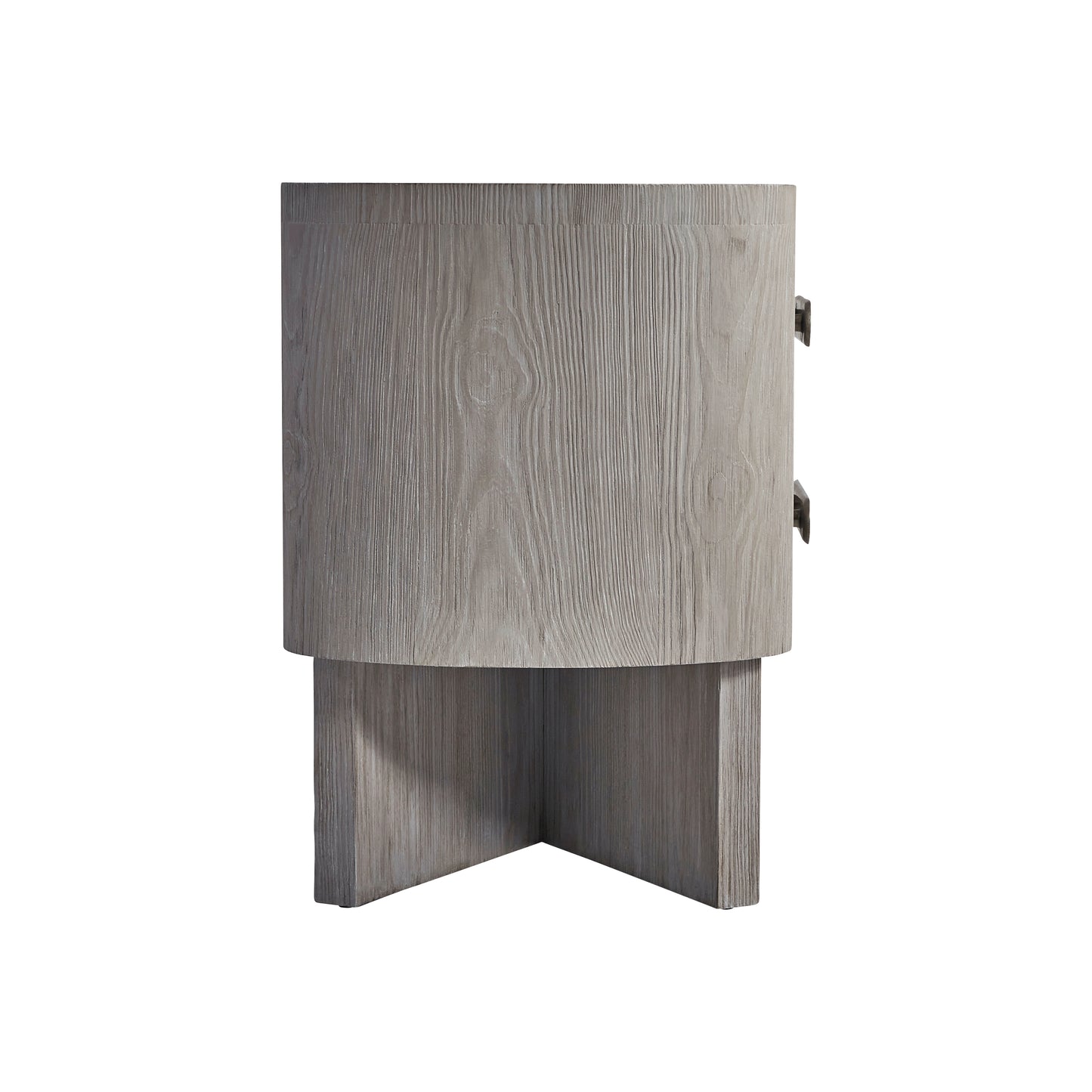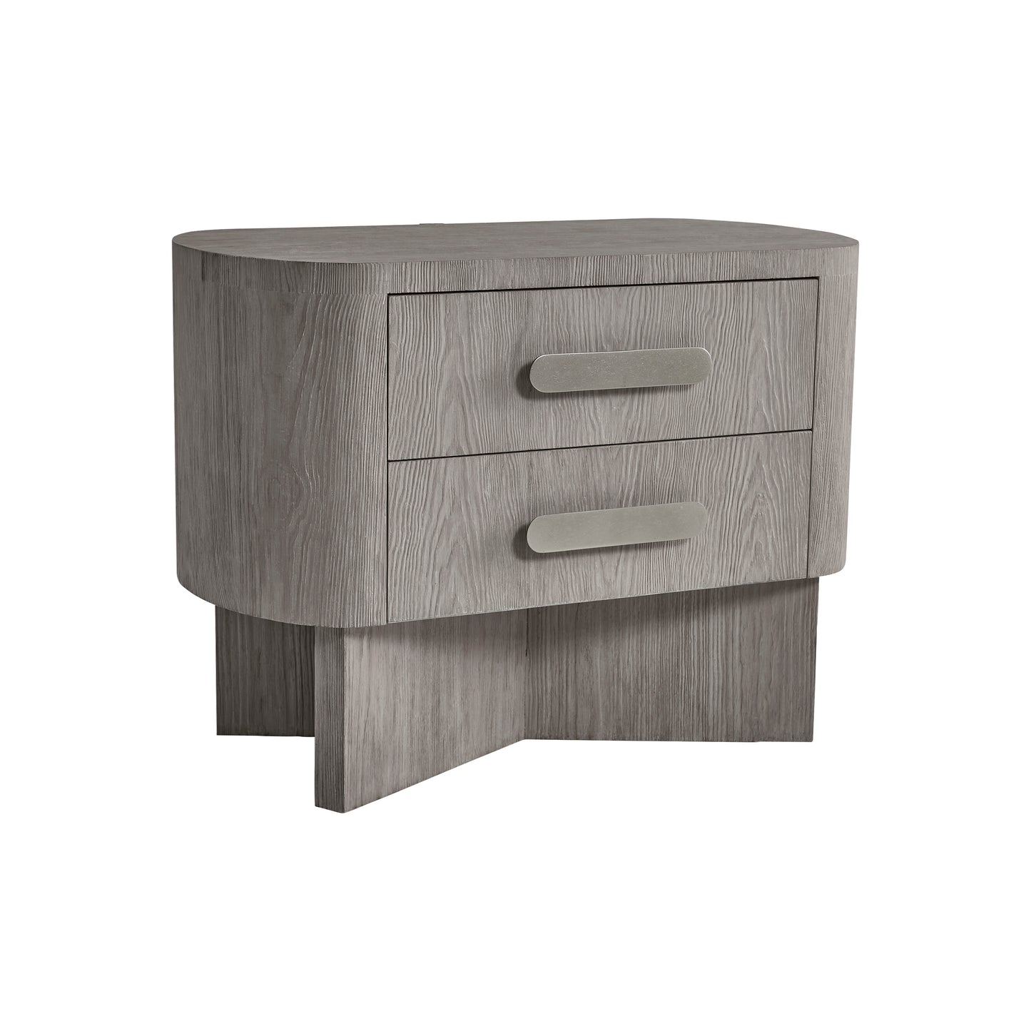 The Trianon nightstand is a study in shape, from its rounded sides to its distinctive X-shaped pedestal base. Its style inspiration is both organic and midcentury modern, giving it a unique aesthetic. Oval-shaped metal hardware provides a jewel-like touch, and function is provided by a two-port USB charging system on the back of the case.