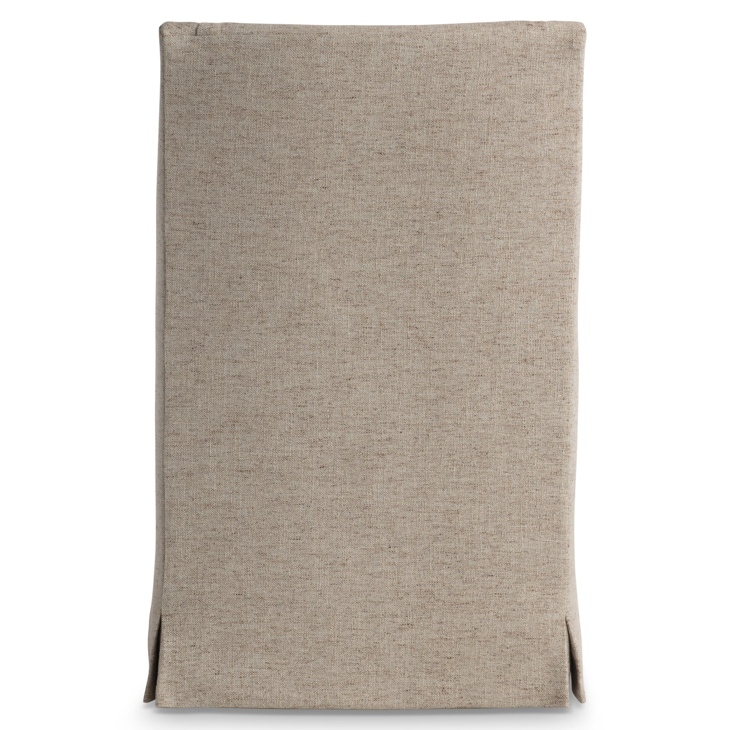 Traditional forms pare to clean lines for the Tribeca arm chair. Curved arms complement the straight lines of the seat and base. A relaxed slipcover style offers a skirt that covers ball casters on the base.