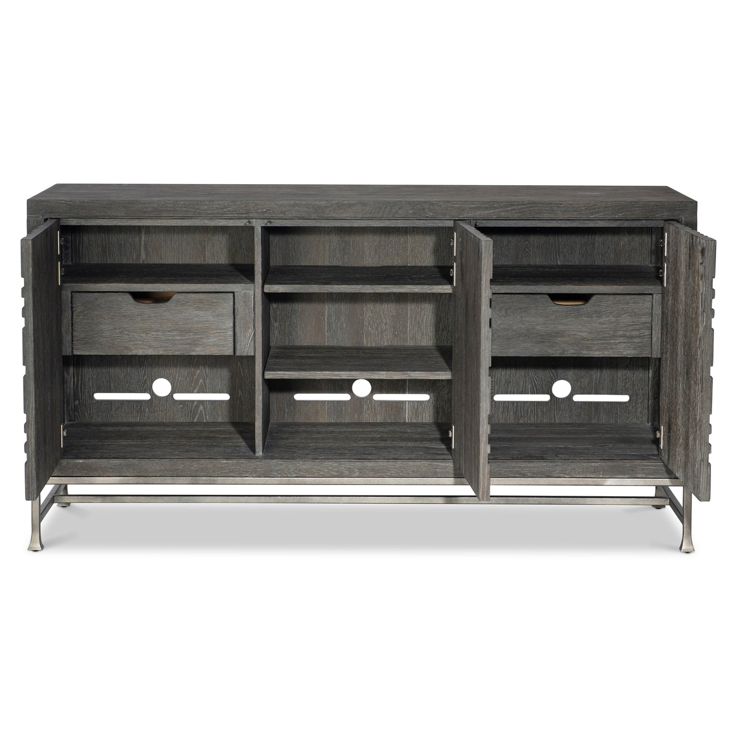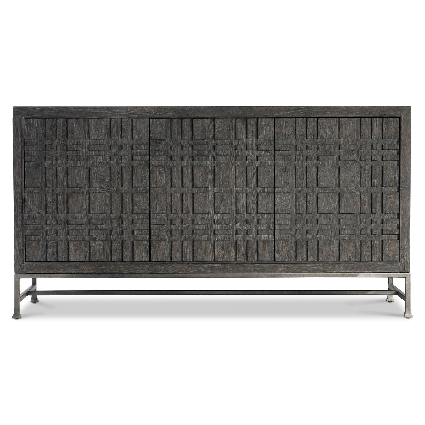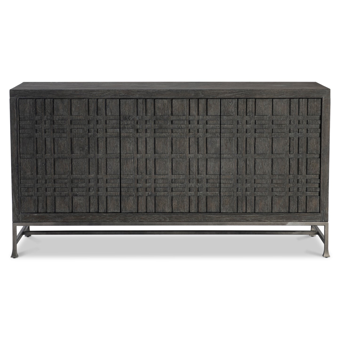 The Tribeca buffet offers a modern urban style with a raised geometric pattern inspired by the grid design of city streets. Finished in dark Tadon, the buffet has three push-to-open doors that open to reveal drawers, two adjustable shelves and two fixed shelves. The base offers a complementary look in textured steel in Barlow finish.