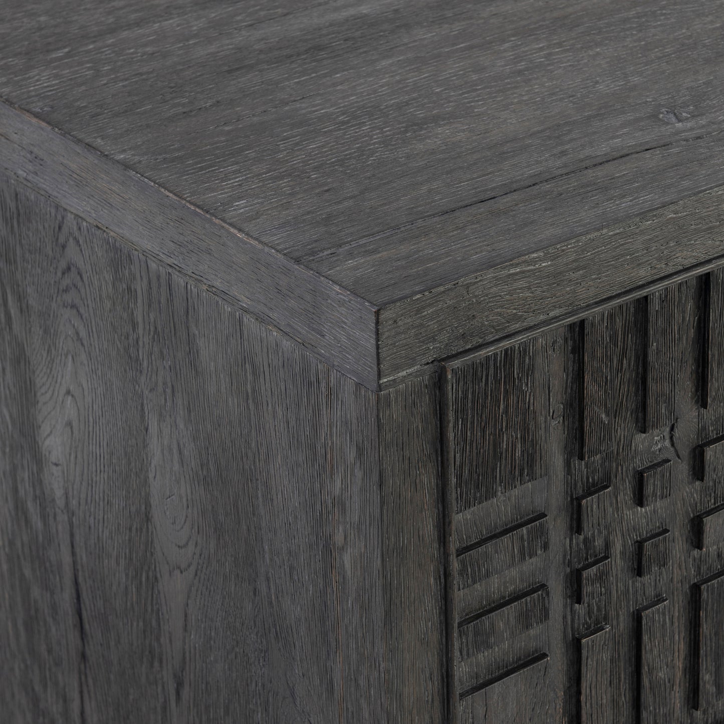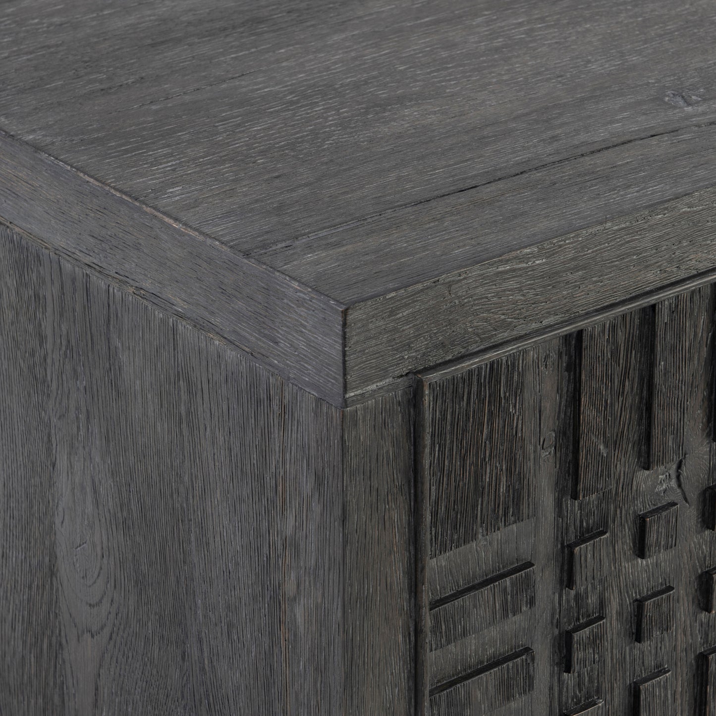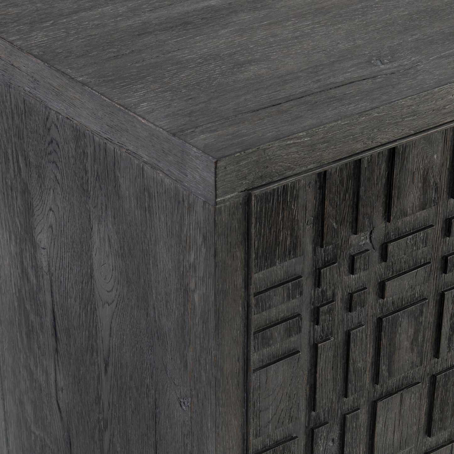 The Tribeca buffet offers a modern urban style with a raised geometric pattern inspired by the grid design of city streets. Finished in dark Tadon, the buffet has three push-to-open doors that open to reveal drawers, two adjustable shelves and two fixed shelves. The base offers a complementary look in textured steel in Barlow finish.