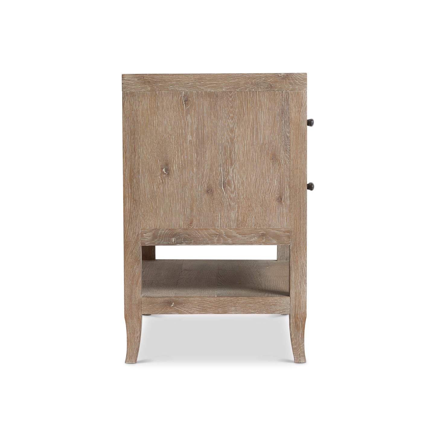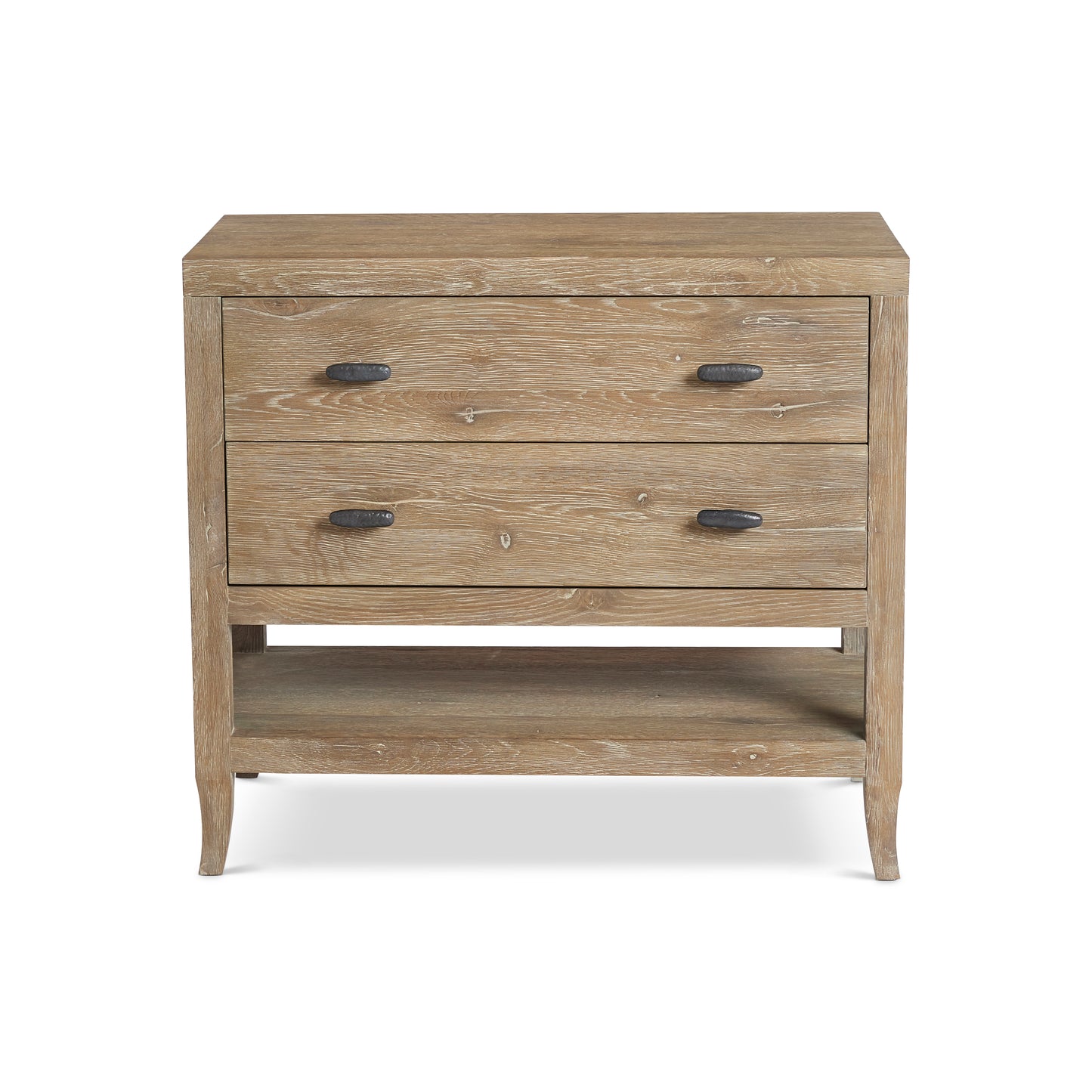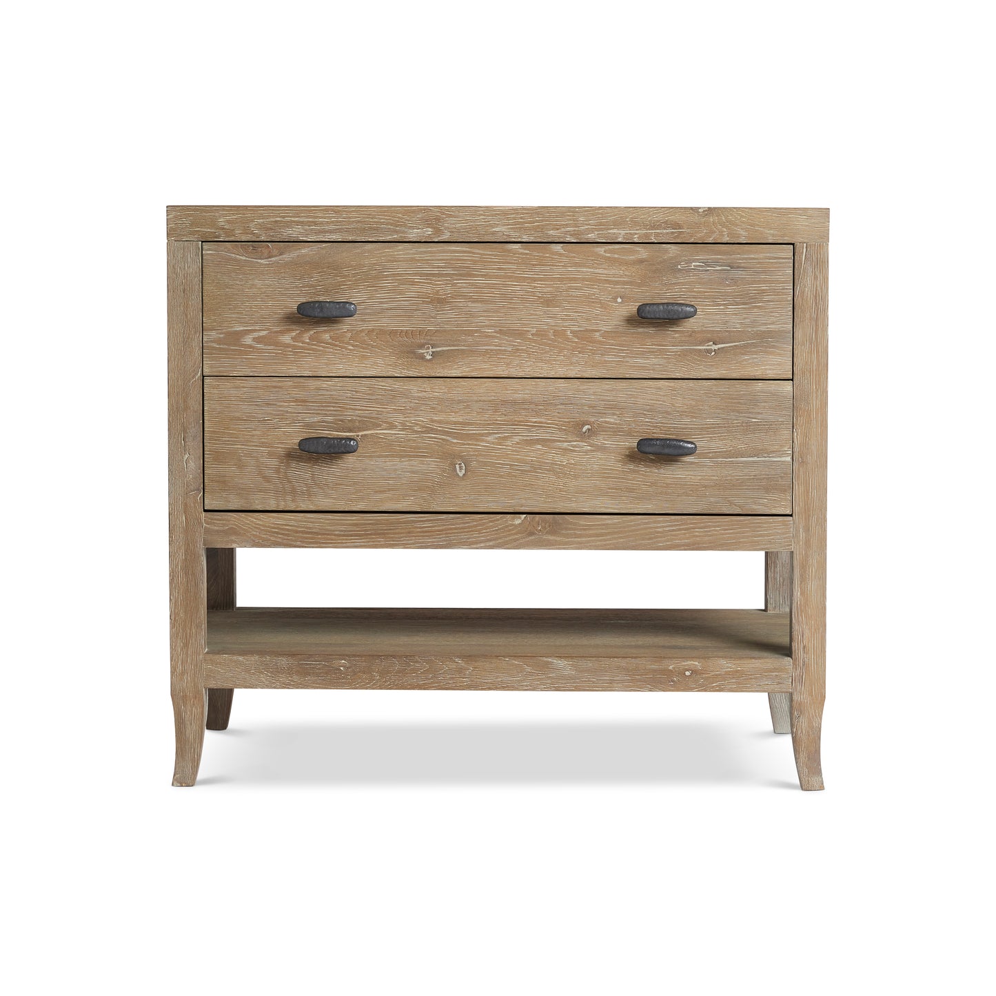 The Tribeca nightstand pares traditional design to simpler lines and stunning rustic style. The details of natural wood are highlighted by the Aurum finish. Each of the two drawers has a textured metal pull tab in Barlow finish. A two-port USB charging unit is included.