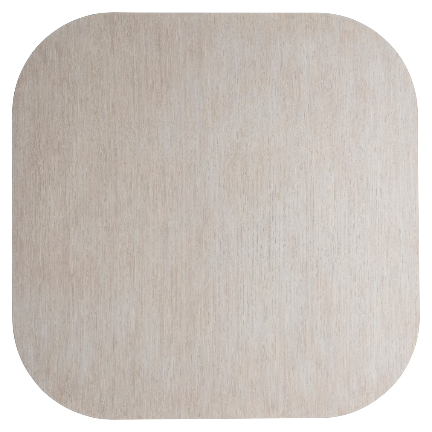 Shape and simple styling offer an uncomplicated form for the Turo cocktail table. Four cylinders form the legs in Fossil finish, supporting a rounded square, wire-brushed oak top in Bone finish.