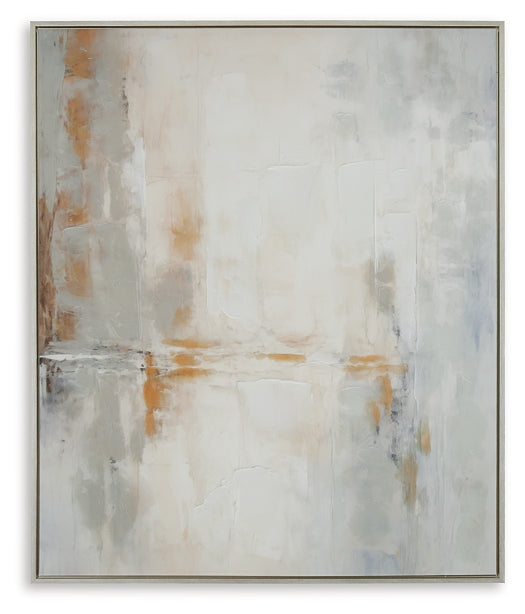 Get lost in the abstract with this delightfully contemporary canvas wall art. Restful tones of gray, amber, white and cream create an impressive display wherever you place the framed piece. Hand-painted embellishment conveys a sense of originality. The ability to hang the art four ways provides more versatility in curating your space.