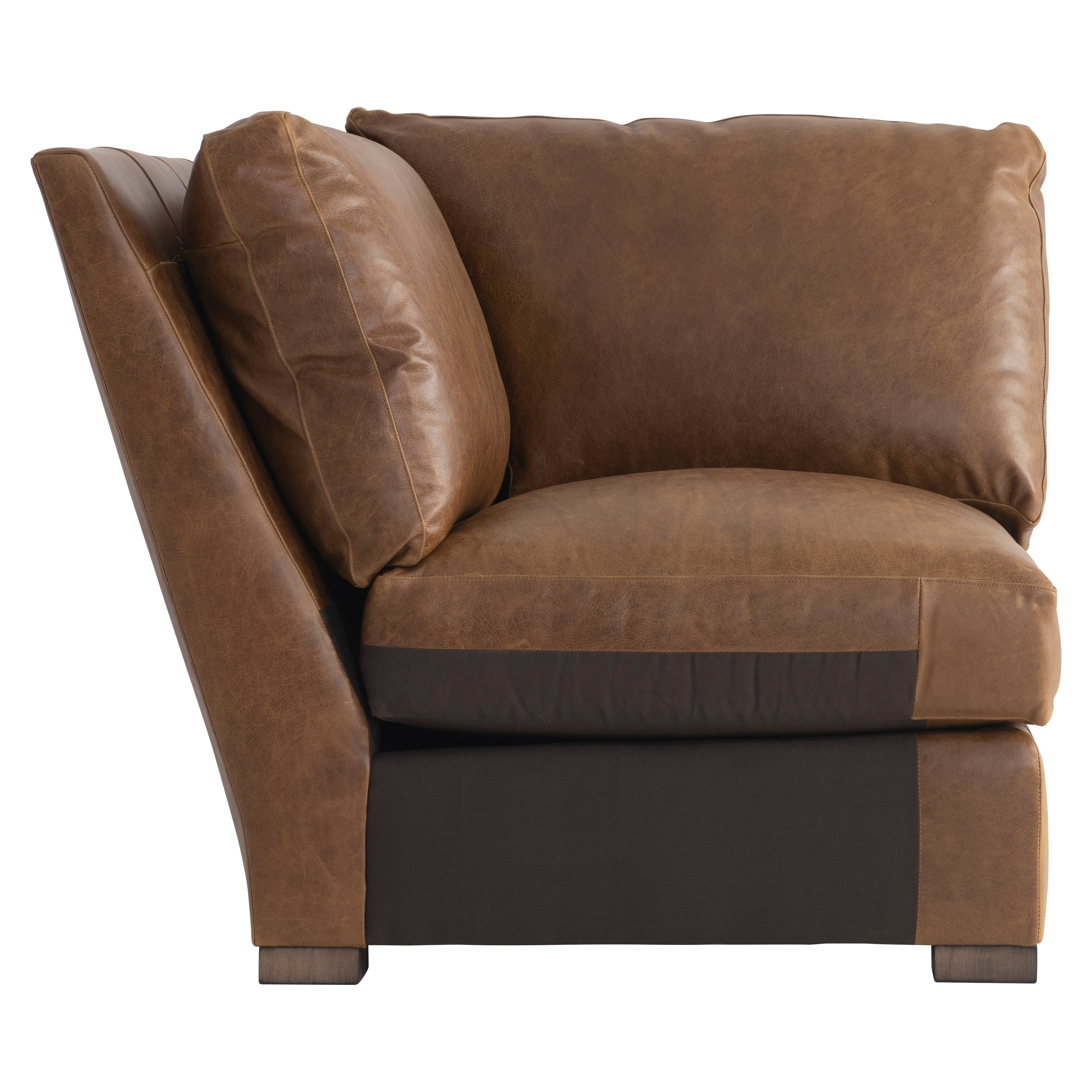 Clean lines and graceful curves blend modern and traditional shaping on the Ventura leather corner chair. A tall back takes an angled line to the base with low-profile feet. A plush seat cushion and box-edge bordered back pillows provide the ultimate in comfort. This chair can stand alone or be used as part of the Ventura sectional.
