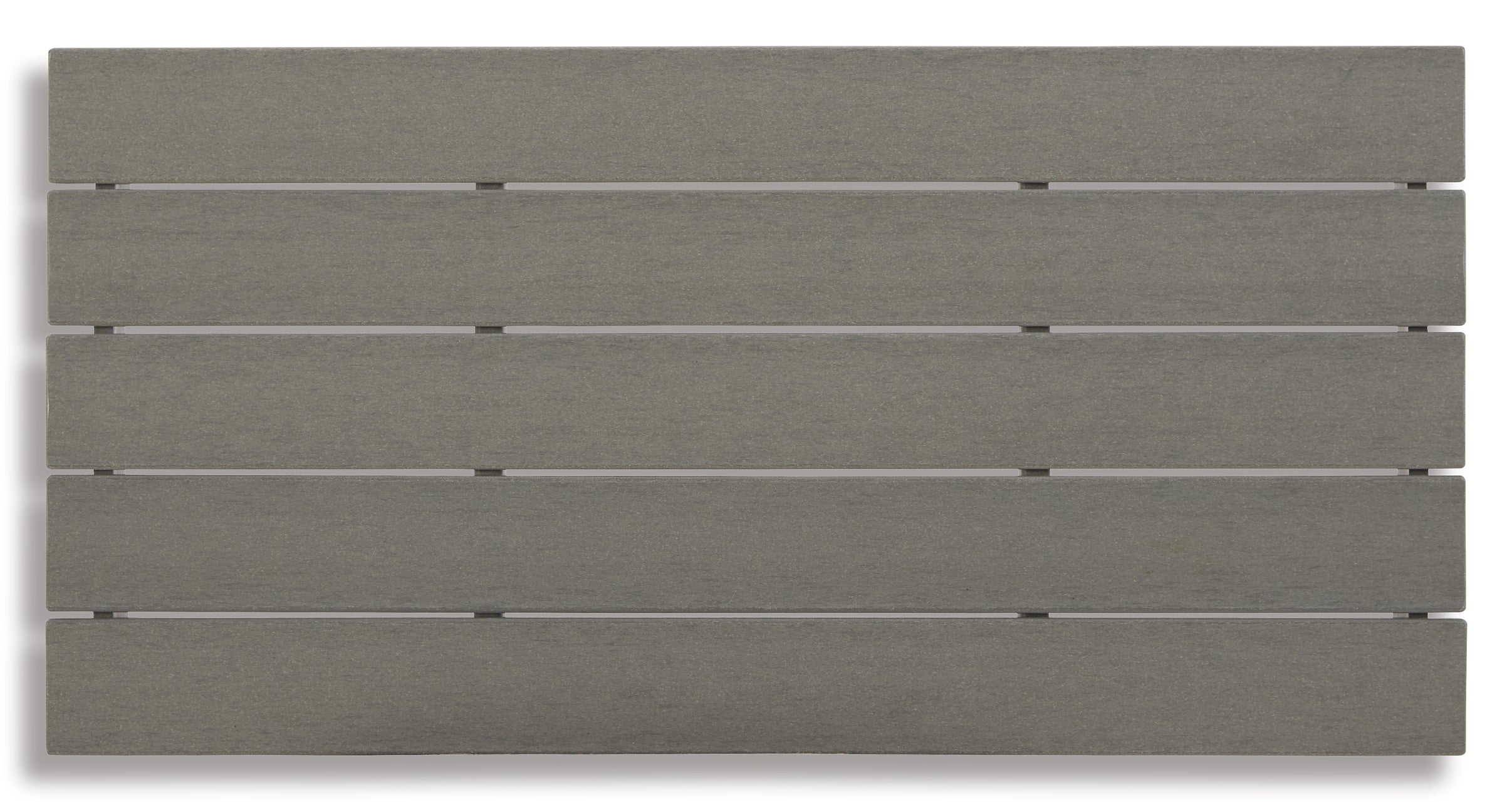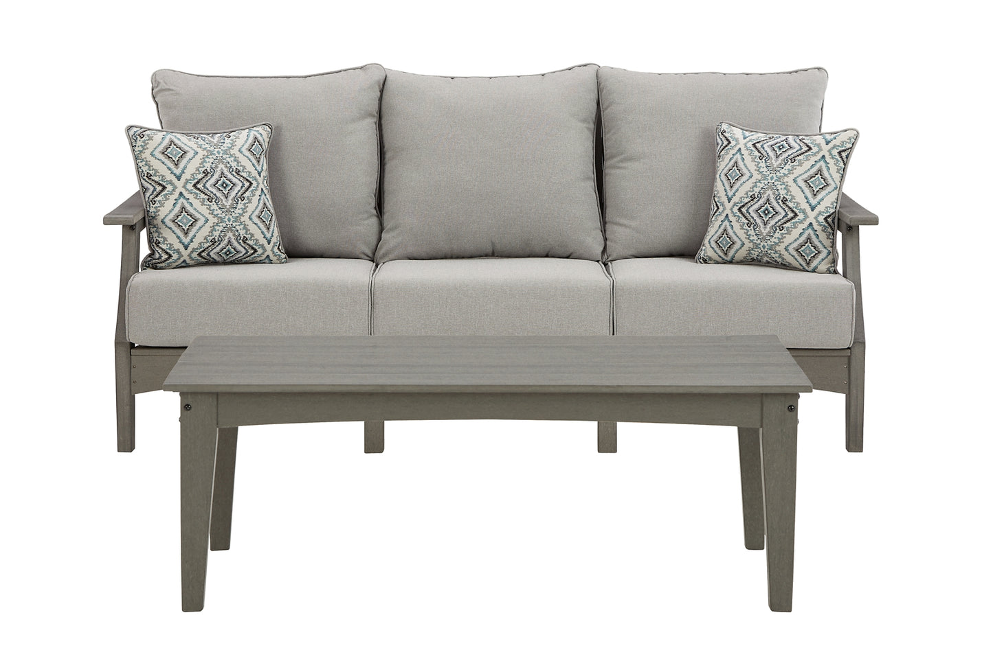 It’s the dawn of a new day for gray. Embrace the style trend with this sofa and coffee table set. Crafted of HDPE material that combines the exceptional durability and weather resistance you need with the "wood look" you love, this timeless set takes alfresco living to a whole new level. The slatted styling on the table naturally sheds rainwater. Thick seat and back cushions on the sofa are wrapped in our exclusive Nuvella® high-performance fabric that’s fade resistant, stain resistant and a breeze to clean.