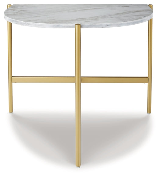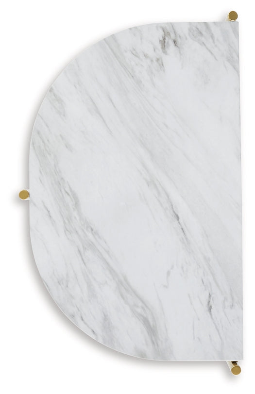 Add a bright spot to your contemporary space with this side table. The replicated Carrara marble top provides a chic sophistication while a goldtone finish on the metal frame heightens the modern aesthetic.