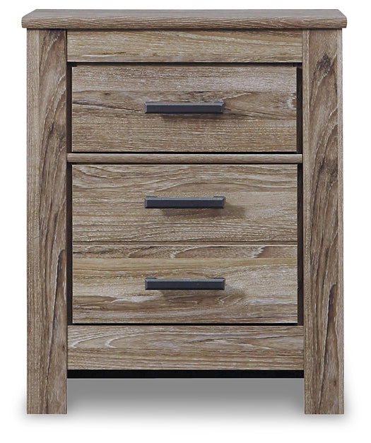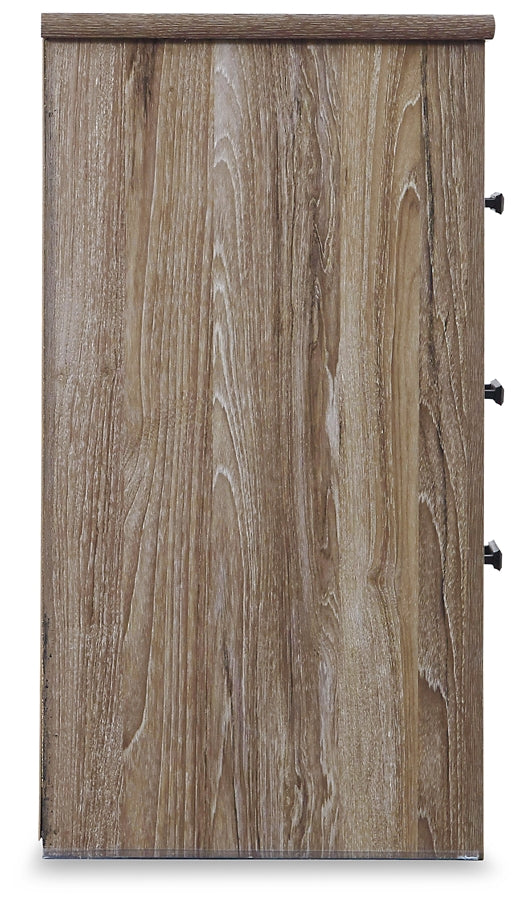Urban sophistication with a decidedly relaxed air. If effortless elegance is the impression you’re going for, this bedroom set is custom made to fit your space. It’s got the crisp, clean lines of a contemporary piece, but with softly weathered elements, including antiqued industrial pulls on the case piece and an earthy finish that lets the beauty of replicated oak grain flow through.